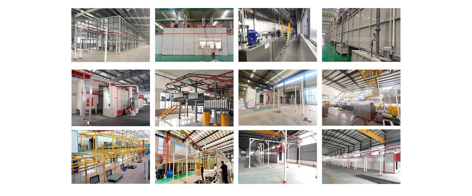 ? ??涂裝設備生產線廠家主要產品的有:噴涂設備流水線、機械臂噴涂設備、靜電粉未、噴塑設備、浸塑設備、電泳涂裝流水線、自動升降機、多軸噴涂往復機、大旋風快速換色粉房、粉末回收設備、多功能噴粉室、大型噴漆室、伸縮噴漆室、噴淋前處理設備、燃氣加熱系統、電加熱烤箱烘干系統、固化烘道、積放涂裝線、懸掛輸送系統、地軌輸送;等多種非標定制設備。